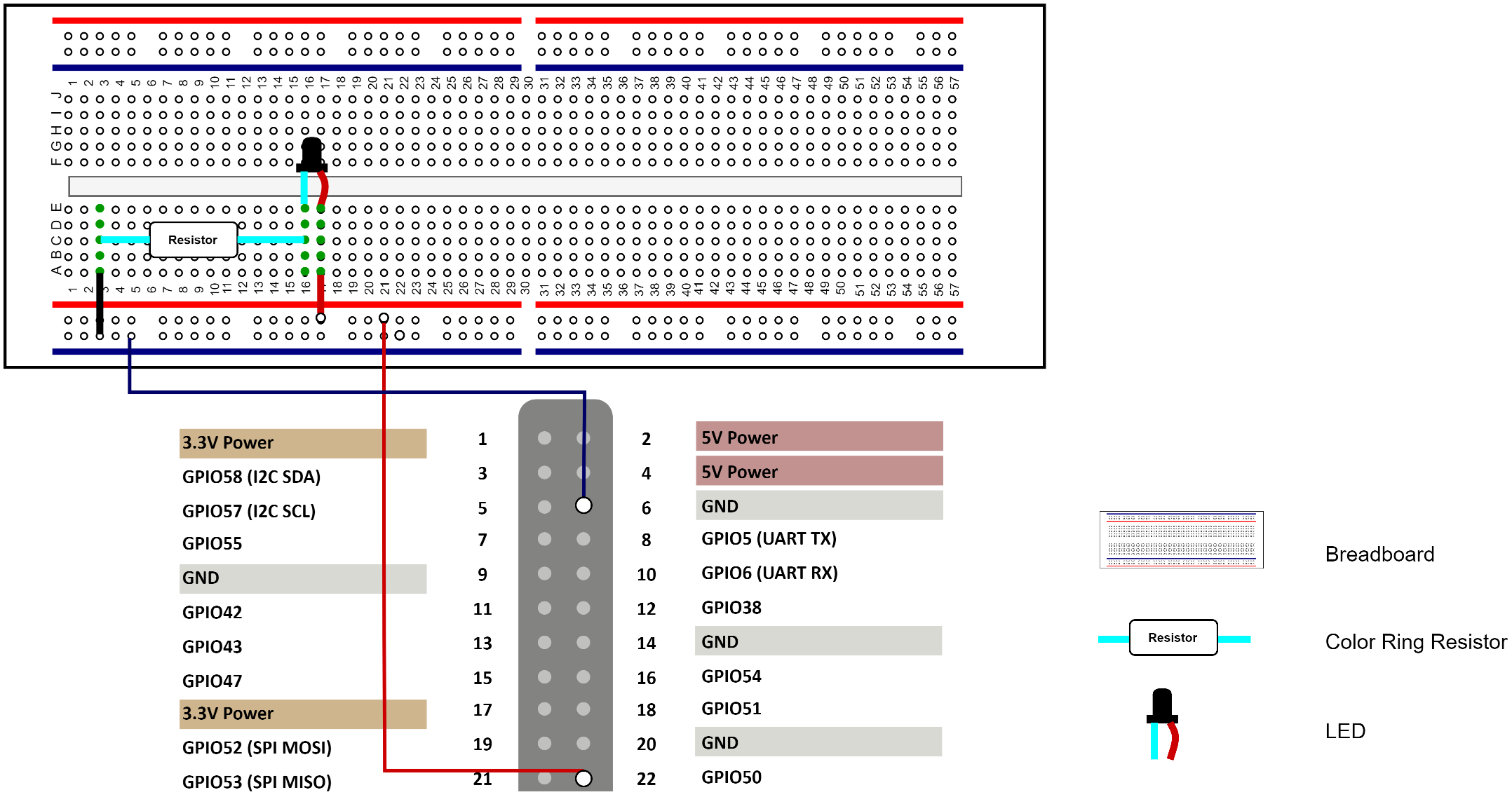 | LED | 40-Pin GPIO Header | |