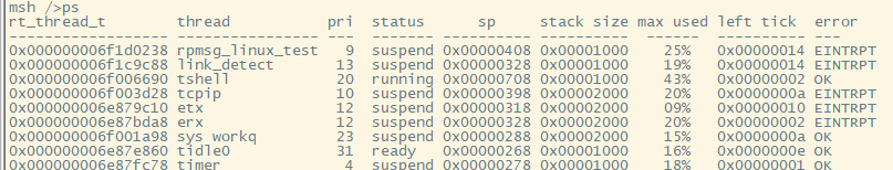 continue to execute, and at this point, the finish shell of RT-Thread can also
