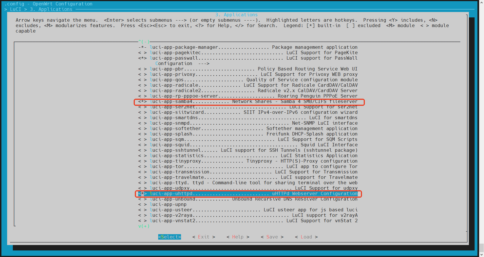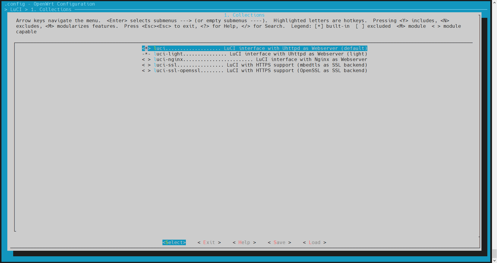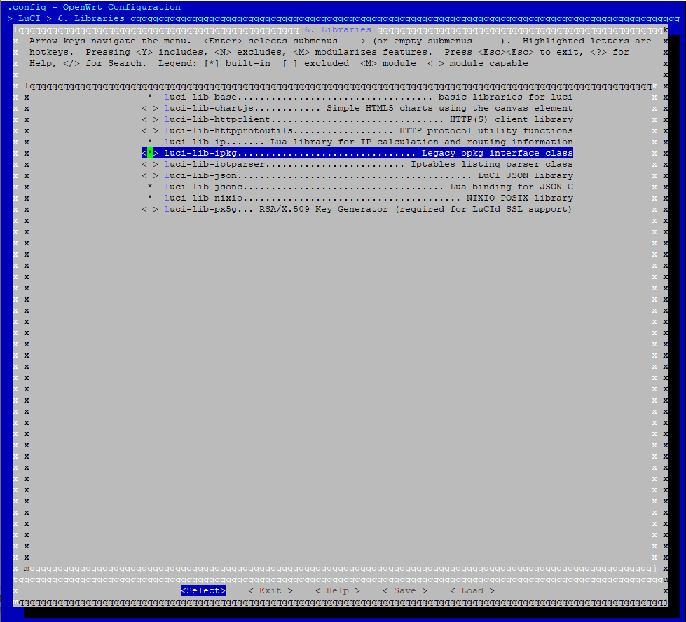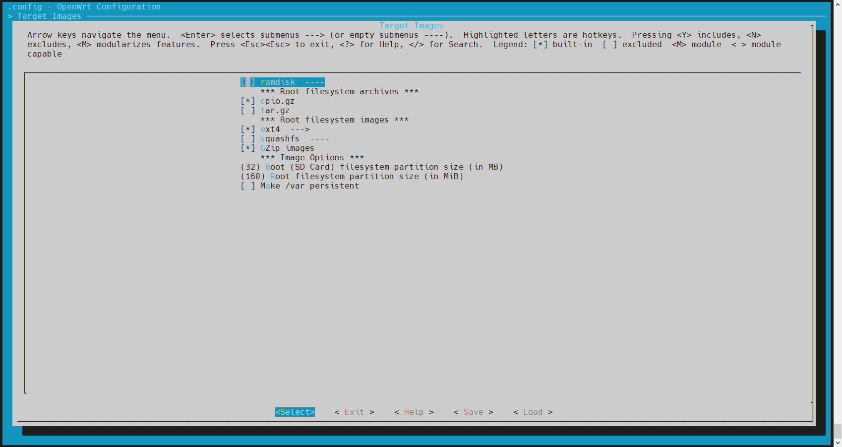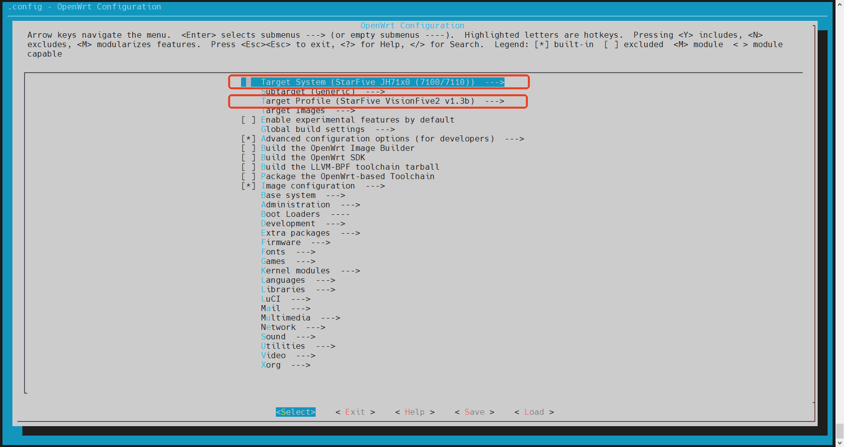 In the menu configuration GUI, follow the steps to select the corresponding option:- In OpenWrt Configuration, select Target System and Target