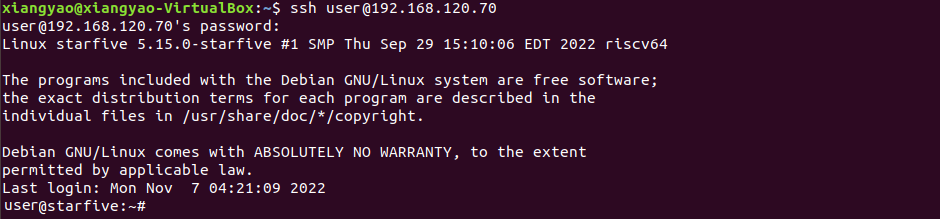 Now you have connected with the VisionFive 2 via SSH using Mac/Linux!