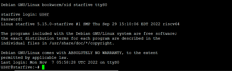 Result:Now you have connected with the VisionFive 2 via serial communication using MacOS/Linux!