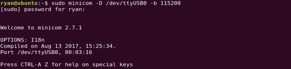 sudo minicom -D /dev/ttyUSB0 -b 115200Note: The baud rate is set to 115,200.Figure 3. Example Output