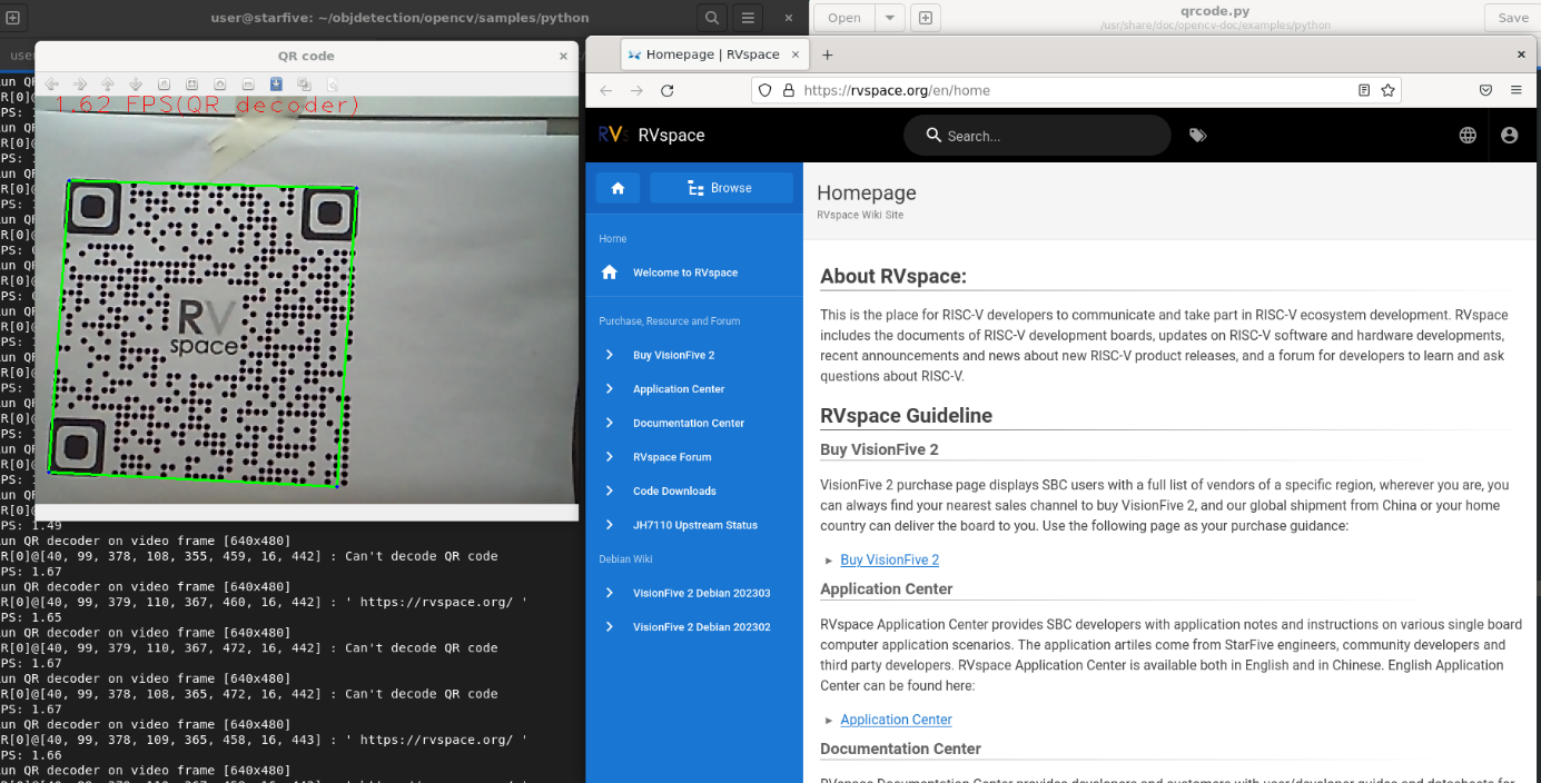 cd /usr/share/doc/opencv-doc/examples/python/ python3 qrcode.py --device=4 - To run C++ application: