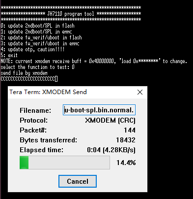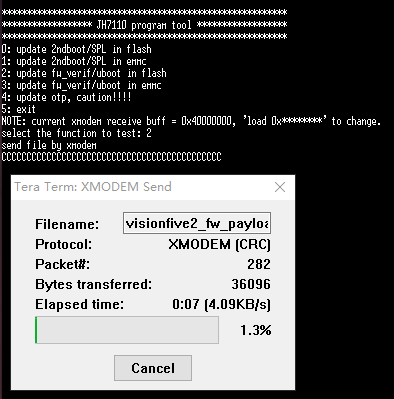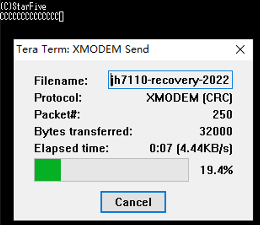 by XMODEM. The recovery binary is located at: https://github.com/starfive-tech/Tools/tree/master/recovery.Tip: <Version> indicates the version number of the recovery file. Make sure you use the latest version.