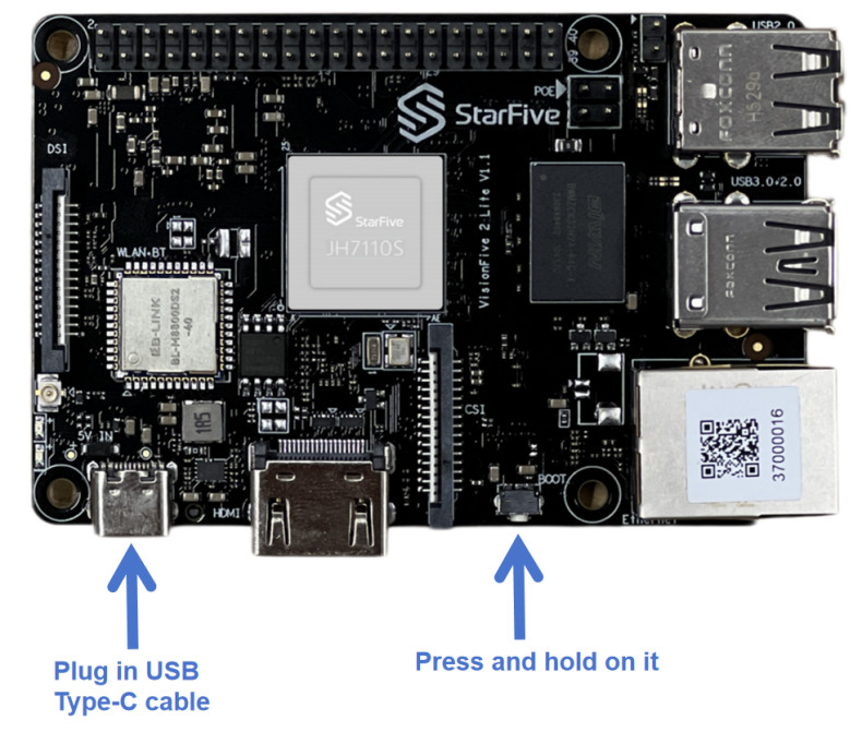 Figure 1. Connecting to the Debug Pins of VisionFive 2 Lite 40-pin GPIO Header - Before you recover the bootloader, press and hold the recovery button while to